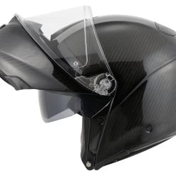 We think the AGV *Sportmodular* flip-up helmet can safely be described as “astonishing”. Made entirely of carbon fibre (shell and chin guard). On a par with the *Pista GP R* by Moto GP. It has a horizontal 190° eye port with the same field of view as the human eye. The *Sportmodular* was also designed in the wind tunnel to achieve unbeatable acoustics and aerodynamic stability and also top-notch ventilation. What’s more, it is equipped for the *ARK communication system* by Sena.
