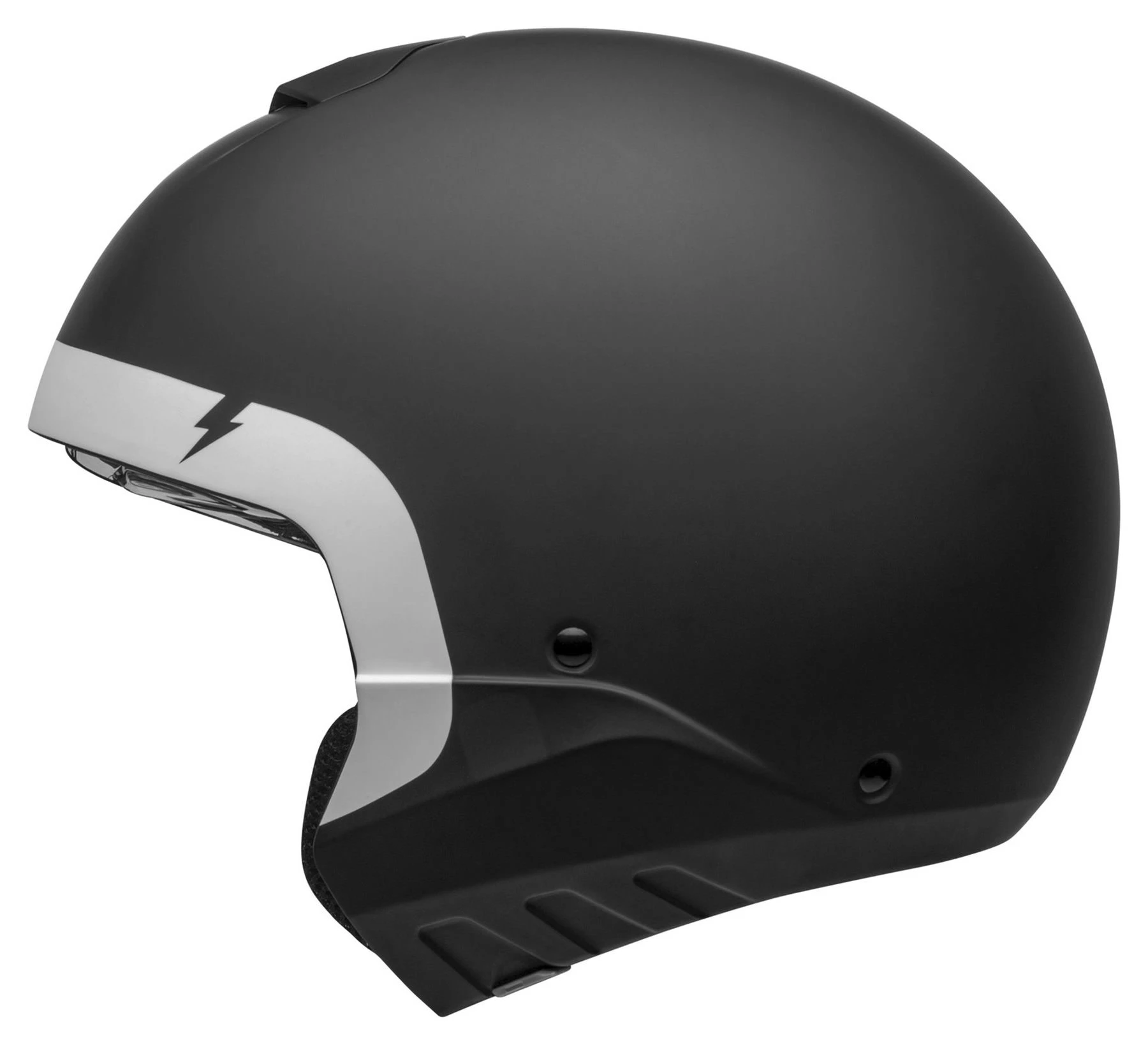 Neo-retro is a very popular trend in the motorcycle world. That goes for the motorbikes themselves, but also biker gear and especially helmets. Bell has taken this trend on board and brought out the *Broozer*, a modular (flip-up) helmet that goes perfectly with modern café racers and even the naked bike scene. With clean lines, large eye port and removable chin piece. Plus great comfort and convenience, a good weight, and strong, aggressive design.