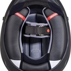 - Other features: chin curtain and breath guard are included. Emergency quick-release cheek pads (makes helmet easier to remove in an emergency), double visor closure, and dark smoke tear-off visor