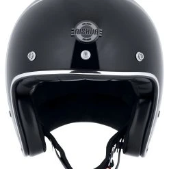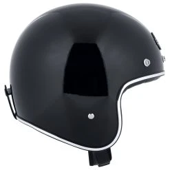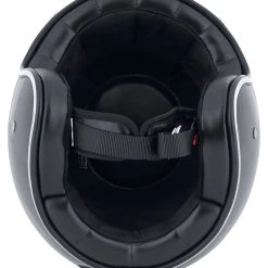 The Nishua *Jet-2* is totally retro – perfect for all jet (open-face) helmet fans. An attractively clean, round, no-frills shape, with chrome trim and smooth leatherette-edged padding – all this lends the *Jet-2* its unique vintage character. The icing on the cake is the Classic Nishua face shield on the forehead. If you forget about the classic look for a moment, what you have is a modern, safe jet helmet that’s ideal for wearing on your scrambler, chopper or naked bike.
