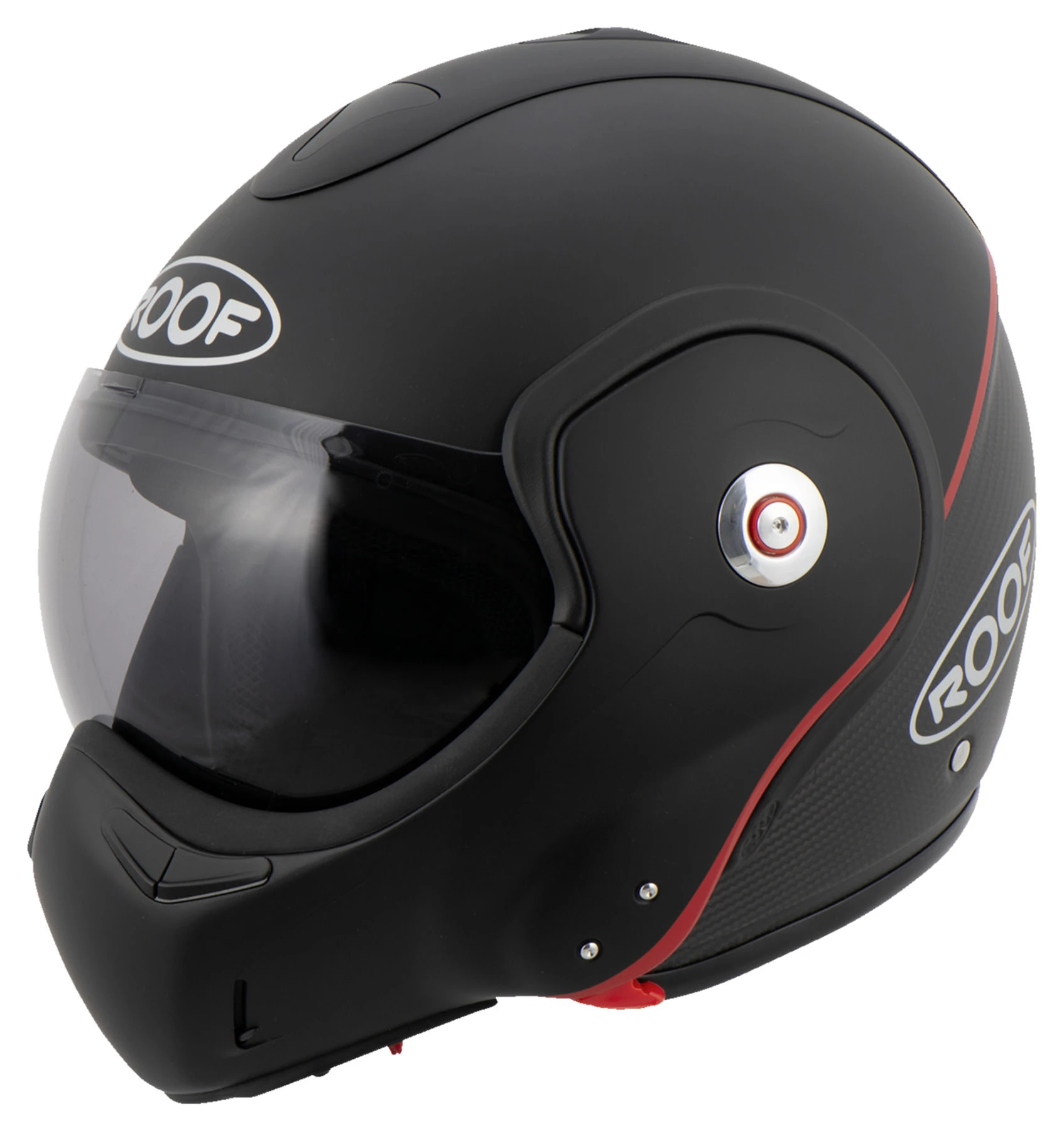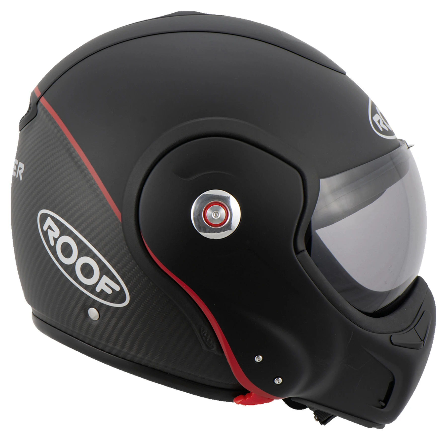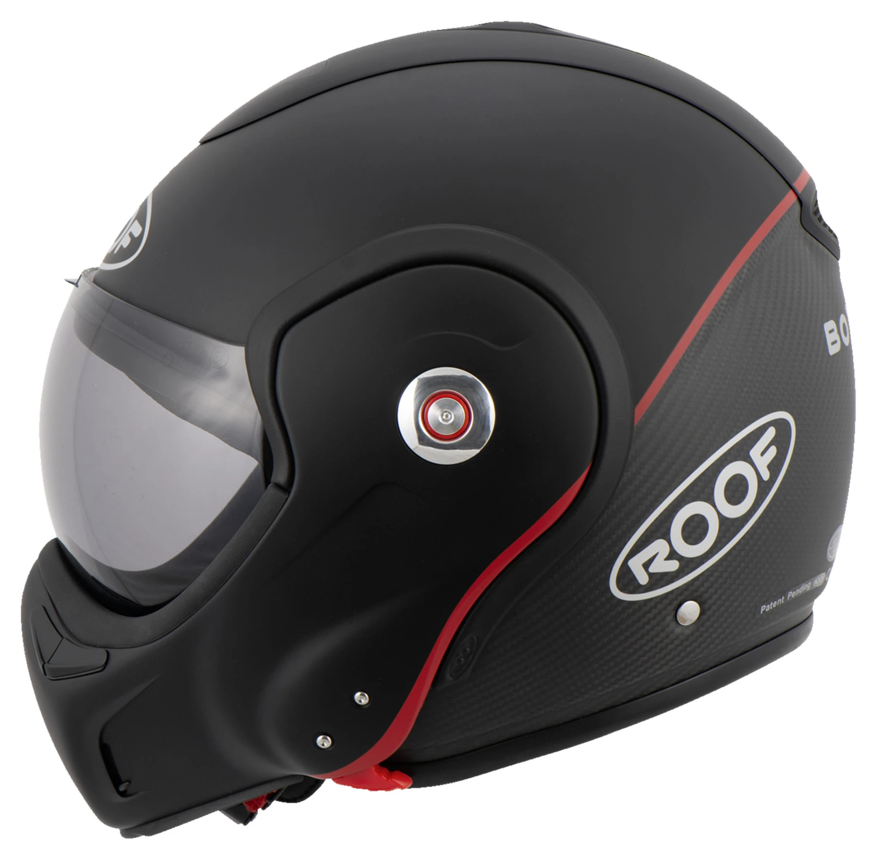 Roof has developed the next generation of the extraordinary *Boxer V8*. Like the *Boxer V8*, the appeal of this motorcycle helmet lies in its unique concept, outstanding design and comfortable fit. Convenient one hand sequential unlocking for changing between jet and full face helmet only adds to this appeal. The aerodynamics and vent system have also been improved. Don’t just take our word for it though, discover the *Boxxer Carbon* for yourself!